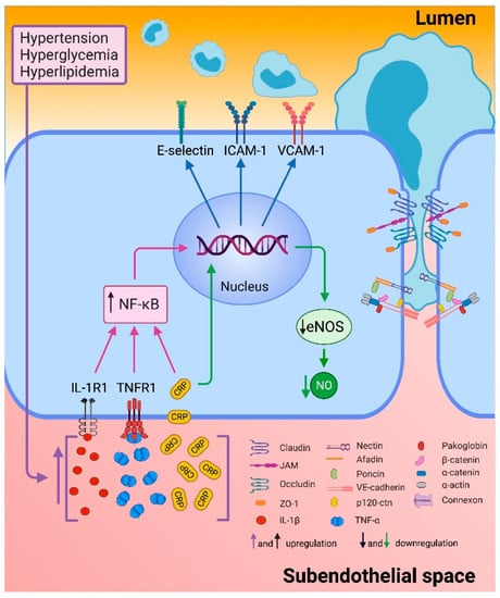 - Pober, J.S.; Sessa, W.C. Evolving functions of endothelial cells in inflammation. Nat. Rev. Immunol. 2007, 7, 803–815. [Google Scholar] [CrossRef]