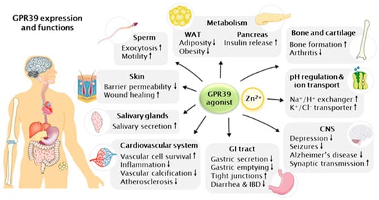 Laitakari, A.; Liu, L.; Frimurer, T.M.; Holst, B. The Zinc-Sensing Receptor GPR39 in Physiology and as a Pharmacological Target. Int. J. Mol. Sci. 2021, 22, 3872. https://doi.org/10.3390/ijms22083872