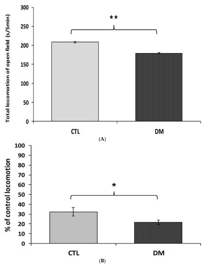 2.1. The Impact of Diabetes on the Spontaneous Locomotor and Exploratory Activity and the Memory and Learning Process of Mice