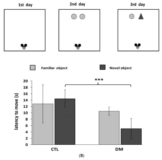 - Ennaceur, A.; Delacour, J. A new one-trial test for neurobiological studies of memory in rats. Behav. Brain Res. 1988, 31, 47–59. [Google Scholar] [CrossRef]