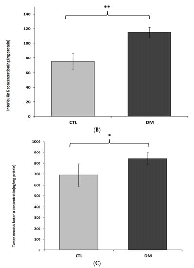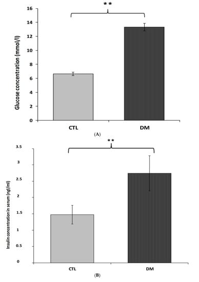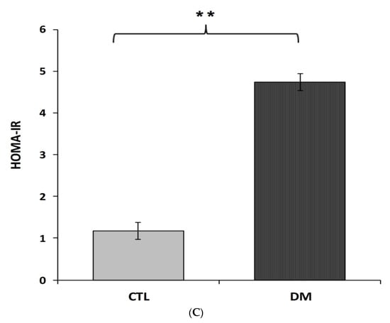 2.2. Serum Level of Glucose (A), Insulin (B), HOMA-IR Index (C) in Mice