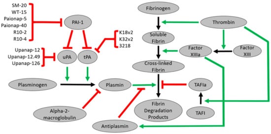 Plasminogen activator inhibitor-1 (PAI-1), a serpin, is the primary inhibitor of the fibrinolysis system. PAI-1 inhibits urokinase-type plasminogen activator (uPA) and tissue-type plasminogen activator (tPA), reducing the activation of plasminogen into plasmin (Figure 4). PAI-1 binds vitronectin on the surface of breast cancer cells, a critical step in metastasis.