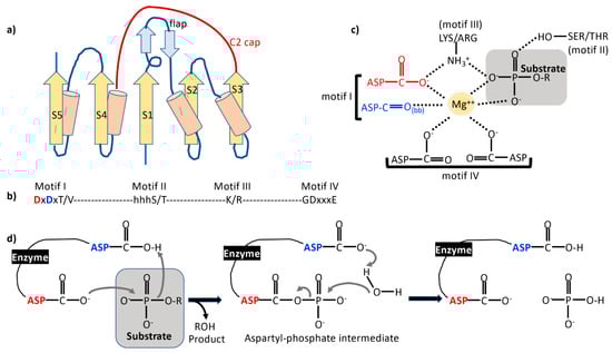 - Burroughs, A.M.; Allen, K.N.; Dunaway-Mariano, D.; Aravind, L. Evolutionary genomics of the HAD superfamily: Understanding the structural adaptations and catalytic diversity in a superfamily of phosphoesterases and allied enzymes. J. Mol. Biol. 2006, 361, 1003–1034. [Google Scholar] [CrossRef]