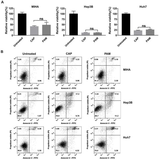 2.3. CAP and PAM Showed Highly Selective Anti-Proliferative Activity in HCC Cell Lines
