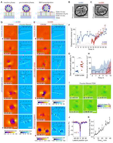 - Dalaka, E.; Kronenberg, N.M.; Liehm, P.; Segall, J.E.; Prystowsky, M.B.; Gather, M.C. Direct measurement of vertical forces shows correlation between mechanical activity and proteolytic ability of invadopodia. Sci. Adv. 2020, 6, eaax6912. [Google Scholar] [CrossRef]
