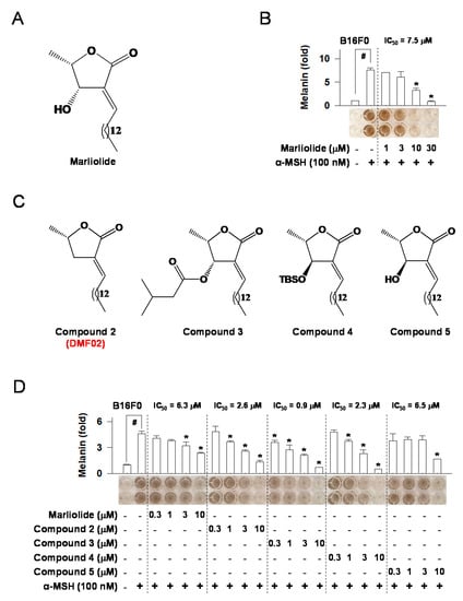 2.1. Marliolide or Marliolide Derivatives Reduced Melanin Products in B16F0 Melanoma Cells