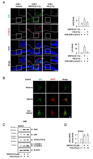 2.5. DMF02 Increased Autophagy in HRM-2 Mice Skin