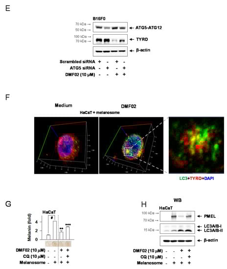 - Yun, W.J.; Kim, E.Y.; Park, J.E.; Jo, S.Y.; Bang, S.H.; Chang, E.J.; Chang, S.E. Microtubule-associated protein light chain 3 is involved in melanogenesis via regulation of MITF expression in melanocytes. Sci. Rep. 2016, 6, 19914. [Google Scholar] [CrossRef] [PubMed]