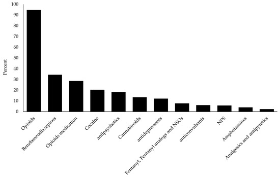 - Pichini, S.; Solimini, R.; Berretta, P.; Pacifici, R.; Busardò, F.P. Acute Intoxications and Fatalities from Illicit Fentanyl and Analogues: An Update. Ther. Drug Monit. 2018, 40, 38–51. [Google Scholar] [CrossRef] [PubMed]