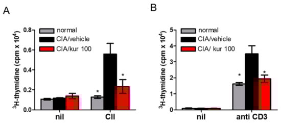 2.3. Kurarinone Treatment Attenuated CII-Specific T Cell Proliferation in CIA