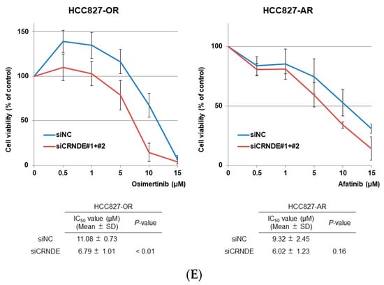 2.3. CRNDE Inhibition Induced Apoptotic Activity and Overcame the Resistance to EGFR-TKIs