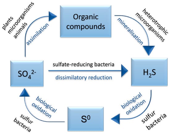 Microorganisms have a significant impact on creating and preserving Earth’s environment by participating in biogeochemical cycles, such as the sulfur cycle. Although many transformations of this cycle can occur in a purely chemical reaction, microorganisms significantly accelerate these processes. Sulfur can occur in the environment in all oxidation states, but most of it is found as elemental (S0), negatively divalent (H2S, R-SH, R1-S-S-R2) and positively hexavalent (sulfate). Each of these forms can only be used by specific organisms, which transform it into a form that other organisms can use [,].