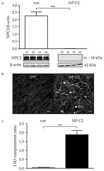 - Meske, V.; Erz, J.; Priesnitz, T.; Ohm, T.-G. The autophagic defect in Niemann-Pick disease type C neurons differs from somatic cells and reduces neuronal viability. Neurobiol. Dis. 2014, 64, 88–97. [Google Scholar] [CrossRef] [PubMed]