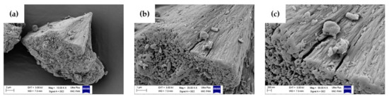 Morphology of hesperidin powder obtained by the scanning electron microscopy (SEM) with (a) 10,000×, (b) 25,000×, (c) 50,000× magnification, respectively.