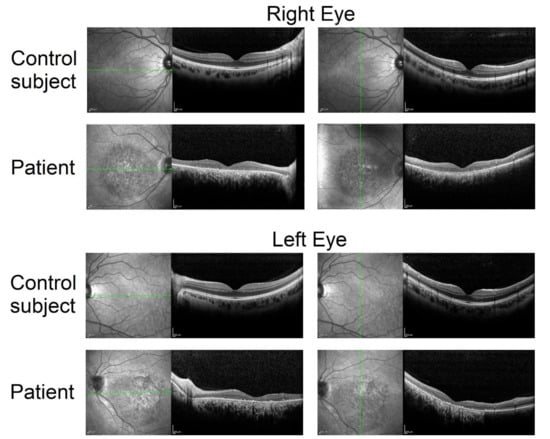 - Gill, J.S.; Georgiou, M.; Kalitzeos, A.; Moore, A.T.; Michaelides, M. Progressive cone and cone-rod dystrophies: Clinical features, molecular genetics and prospects for therapy. Br. J. Ophthalmol. 2019. [Google Scholar] [CrossRef]