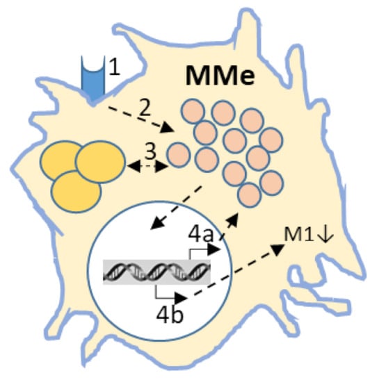 Tissue macrophages are versatile cells involved, for example, in inflammatory responses and tissue repair. The activation of macrophages occurs via the recognition of pathogen-associated molecular patterns (PAMPs), damage-associated molecular patterns (DAMPs), and connected receptive signaling systems. Oversimplified, macrophage phenotypes can be divided into M1 (pro-inflammatory/classically activated) and M2 (anti-inflammatory/alternatively activated) subtypes. M1 activation occurs following recognition of the bacterial product lipopolysaccharide (LPS), interferon gamma (IFNγ), or a combination thereof. M2 activation can, for instance, occur upon stimulation with interleukin (IL)-4 or IL-10 [,,]. This classic view touches the extremes of an array of phenotypes and a more detailed analysis revealed that a continuum and highly flexible pool of macrophage phenotypes can arise [,,,].