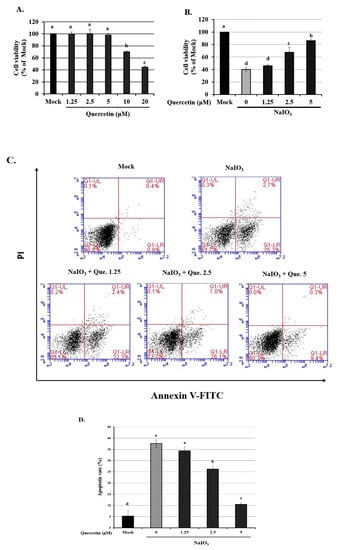 3.1. Effect of Quercetin Pretreatment on the Viability and NaIO3-Induced Apoptosis of ARPE-19 Cells
