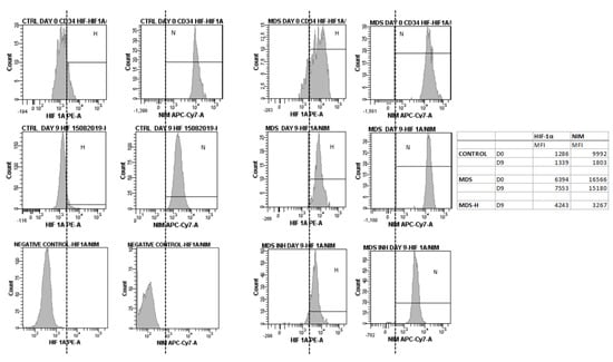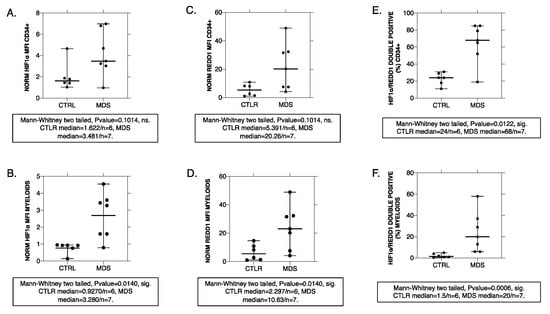 2.1. Human MDS CD34+ and Myeloid-Lineage Cells Display an Activated HIF-1 Profile with Increased REDD1 Protein Levels