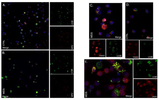 2.3. Mitophagy and Autophagic Cell Death Are Prominently Featured in the MDS Myeloid Lineage; Their Severity Increasing with the Intra BM Blast Counts