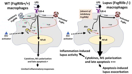 Udompornpitak, K.; Bhunyakarnjanarat, T.; Charoensappakit, A.; Dang, C.P.; Saisorn, W.; Leelahavanichkul, A. Lipopolysaccharide-Enhanced Responses against Aryl Hydrocarbon Receptor in FcgRIIb-Deficient Macrophages, a Profound Impact of an Environmental Toxin on a Lupus-Like Mouse Model. Int. J. Mol. Sci. 2021, 22, 4199. https://doi.org/10.3390/ijms22084199