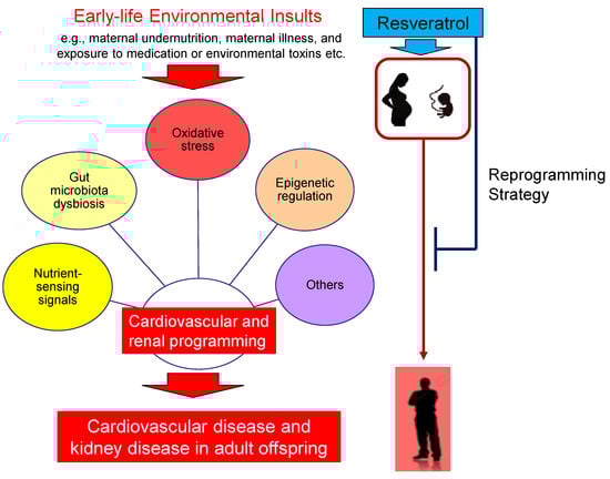 Hsu, C.-N.; Hou, C.-Y.; Tain, Y.-L. Preventive Aspects of Early Resveratrol Supplementation in Cardiovascular and Kidney Disease of Developmental Origins. Int. J. Mol. Sci. 2021, 22, 4210. https://doi.org/10.3390/ijms22084210