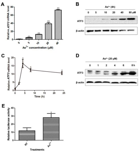 2.1. ATF3 Is Induced in BEAS-2B Cells upon Arsenic Exposure