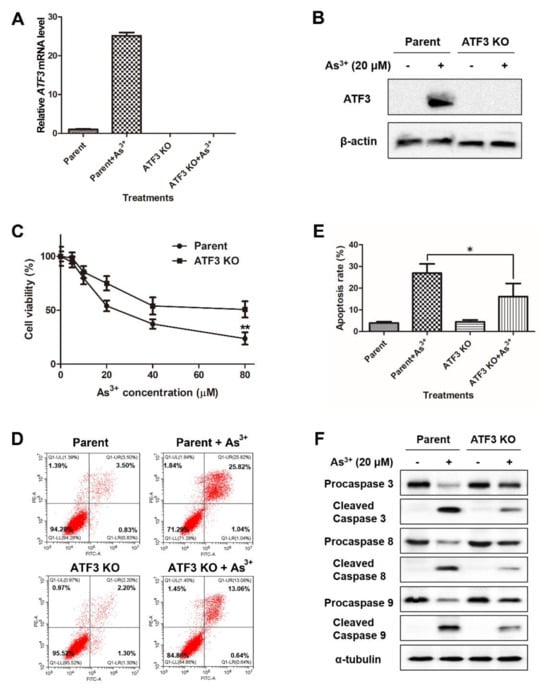 2.3. ATF3 Mediates the Arsenic-Induced Apoptosis