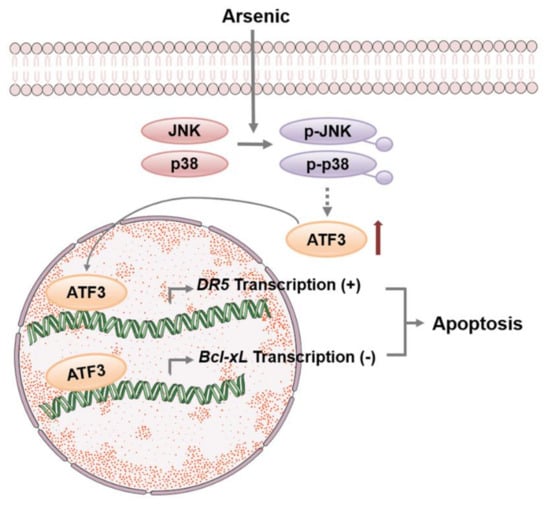 Shi, Q.; Hu, B.; Yang, C.; Zhao, L.; Wu, J.; Qi, N. ATF3 Promotes Arsenic-Induced Apoptosis and Oppositely Regulates DR5 and Bcl-xL Expression in Human Bronchial Epithelial Cells. Int. J. Mol. Sci. 2021, 22, 4223. https://doi.org/10.3390/ijms22084223