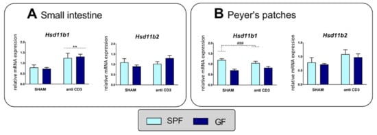 - Vagnerová, K.; Kverka, M.; Klusoňová, P.; Ergang, P.; Mikšík, I.; Tlaskalová-Hogenová, H.; Pácha, J. Intestinal inflammation modulates expression of 11β-hydroxysteroid dehydrogenase in murine gut. J. Endocrinol. 2006, 191, 497–503. [Google Scholar] [CrossRef][Green Version]