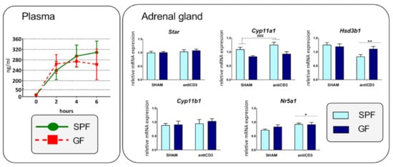 Chicago/Turabian StyleErgang, Peter, Karla Vagnerová, Petra Hermanová, Martin Vodička, Michal Jágr, Dagmar Šrůtková, Václav Dvořáček, Tomáš Hudcovic, and Jiří Pácha. 2021. "The Gut Microbiota Affects Corticosterone Production in the Murine Small Intestine" International Journal of Molecular Sciences 22, no. 8: 4229. https://doi.org/10.3390/ijms22084229