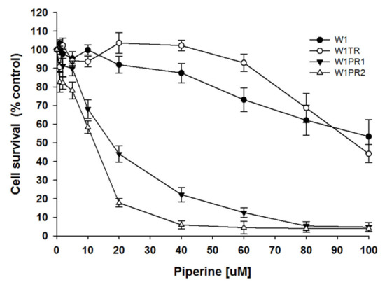 - Li, S.; Lei, Y.; Jia, Y.; Li, N.; Wink, M.; Ma, Y. Piperine, a piperidine alkaloid from Piper nigrum re-sensitizes P-gp, MRP1 and BCRP dependent multidrug resistant cancer cells. Phytomedicine 2011, 19, 83–87. [Google Scholar] [CrossRef]