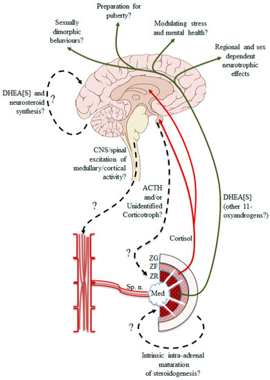 Cumberland, A.L.; Hirst, J.J.; Badoer, E.; Wudy, S.A.; Greaves, R.F.; Zacharin, M.; Walker, D.W. The Enigma of the Adrenarche: Identifying the Early Life Mechanisms and Possible Role in Postnatal Brain Development. Int. J. Mol. Sci. 2021, 22, 4296. https://doi.org/10.3390/ijms22094296