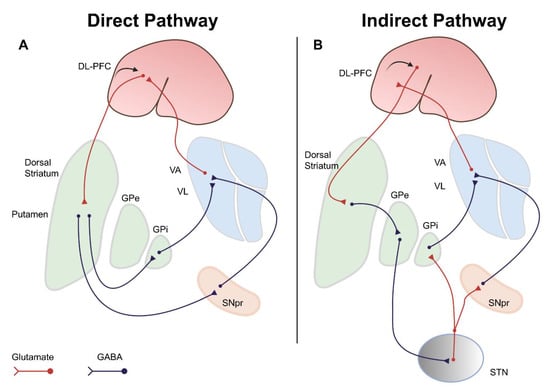 - Albin, R.L.; Young, A.B.; Penney, J.B. The functional anatomy of basal ganglia disorders. Trends Neurosci. 1989, 12, 366–375. [Google Scholar] [CrossRef]