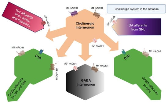 - Lim, S.A.; Kang, U.J.; McGehee, D.S. Striatal cholinergic interneuron regulation and circuit effects. Front. Synaptic Neurosci. 2014, 6, 22. [Google Scholar] [CrossRef] [PubMed]