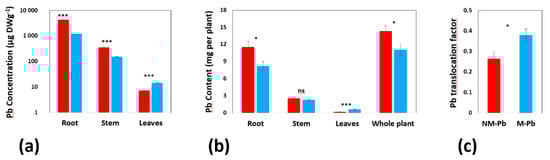 2.2.3. M-Pb vs. NM-Pb: Effect of Inoculation and Increased Biomass of M-Pb Plants