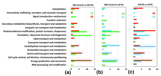 3.1. Molecular Response to Pb Exposure in NM and M Poplar Roots—Similarities