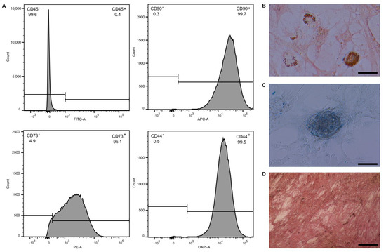 2.1. Evaluation of MSC Phenotype and Differentiation Ability