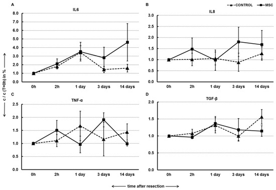 2.5. Portal Vein Transplantation of MSC Did Not Modulate Pro-Inflammatory Cytokines and TGF-β in a Porcine Model of Biliary Obstruction