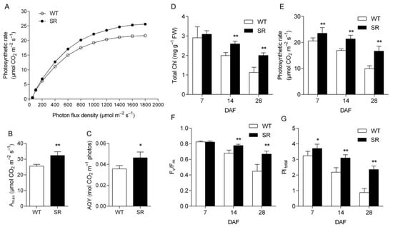 2.4. Increased Photosynthetic Capacity in Rice SR