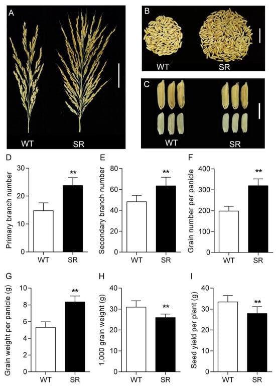 - Takai, T.; Adachi, S.; Taguchi-Shiobara, F.; Sanoh-Arai, Y.; Iwasawa, N.; Yoshinaga, S.; Hirose, S.; Taniguchi, Y.; Yamanouchi, U.; Wu, J.-Z.; et al. A natural variant of NAL1, selected in high-yield rice breeding programs, pleiotropically increases photosynthesis rate. Sci. Rep. 2013, 3, 2149. [Google Scholar] [CrossRef]