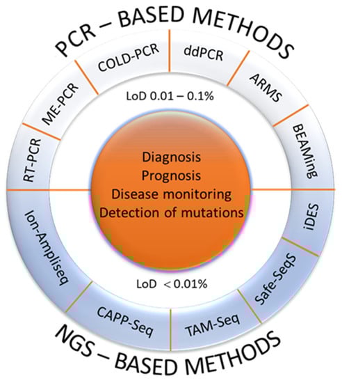 - Said, R.; Guibert, N.; Oxnard, G.R.; Tsimberidou, A.M. Circulating tumor DNA analysis in the era of precision oncology. Oncotarget 2020, 11, 188–211. [Google Scholar] [CrossRef] [PubMed]