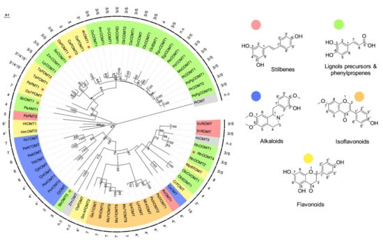 - Kim, B.G.; Lee, Y.; Hur, H.G.; Lim, Y.; Ahn, J.H. Flavonoid 3′-O-methyltransferase from rice: CDNA cloning, characterization and functional expression. Phytochemistry 2006, 67, 387–394. [Google Scholar] [CrossRef]