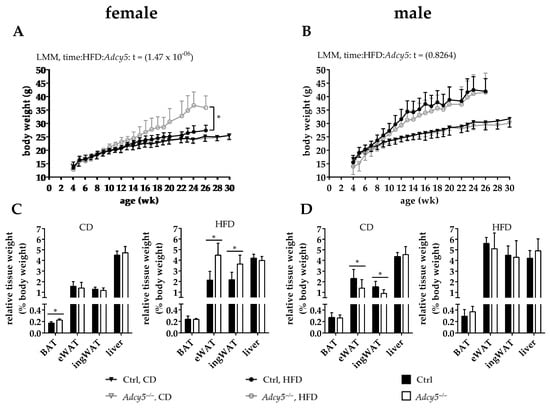 2.1. Adcy5–/– Mice Are Not Protected against Obesity