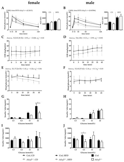 - Ho, D.; Zhao, X.; Yan, L.; Yuan, C.; Zong, H.; Vatner, D.E.; Pessin, J.E.; Vatner, S.F. Adenylyl Cyclase Type 5 Deficiency Protects Against Diet-Induced Obesity and Insulin Resistance. Diabetes 2015, 64, 2636–2645. [Google Scholar] [CrossRef] [PubMed]