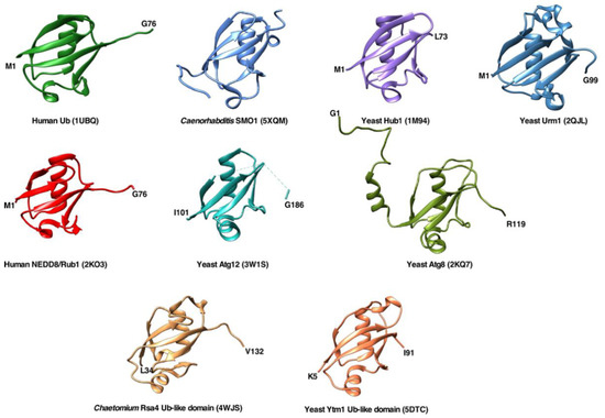 - Hochstrasser, M. Origin and function of ubiquitin-like proteins. Nature 2009, 458, 422–429. [Google Scholar] [CrossRef]