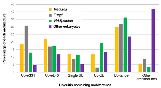 - Sibbald, S.J.; Hopkins, J.F.; Filloramo, G.V.; Archibald, J.M. Ubiquitin fusion proteins in algae: Implications for cell biology and the spread of photosynthesis. BMC Genomics 2019, 20, 38. [Google Scholar] [CrossRef] [PubMed]