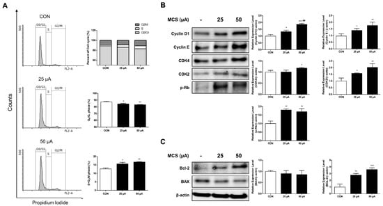 2.3. Effect of MCS on G1 Phase Related Protein and Apoptosis Related Protein Expression