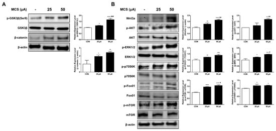 2.4. MCS-Induced Activation of the PI3K/AKT/mTOR/Fox01 Signaling Pathway and Wnt Pathway Affects Upregulation of β-Catenin Expression