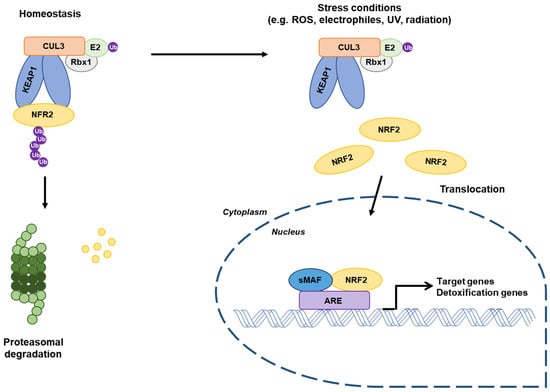 - Vomund, S.; Schafer, A.; Parnham, M.J.; Brune, B.; von Knethen, A. Nrf2, the Master Regulator of Anti-Oxidative Responses. Int. J. Mol. Sci. 2017, 18, 2772. [Google Scholar] [CrossRef]