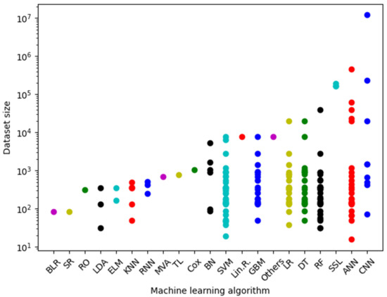 1 CNN, Convolutional Neural Network; 2 RF, Random Forest; 3 SVM, Support Vector Machines; 4 DT, Decision Tree; 5 ANN, Artificial Neural Network; 6 KNN, K-Nearest Neighbours; 7 GBM Gradient Boosting Machines; 8 LR, Logistic Regression; 9 LDA Linear Discriminant Analysis; 10 ELM, Extreme Learning Machines.